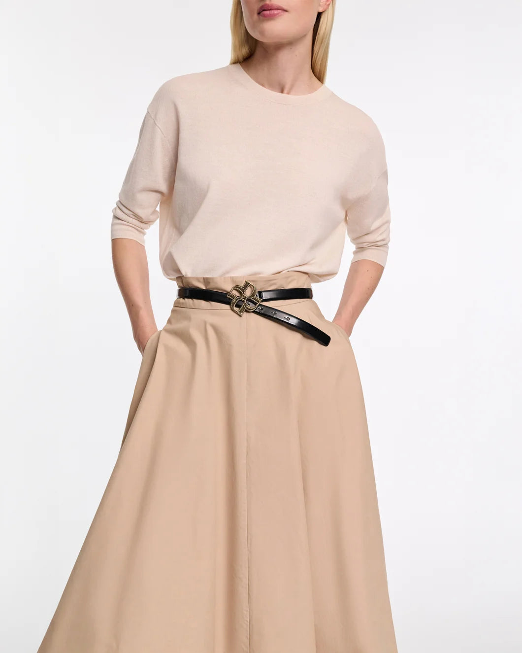 Dorothee Schumacher black embellished midi swing skirt with pearls and crystalsdorothee schumacher poplin power skirt pure black on figure front